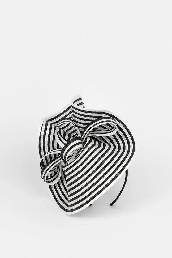 Detailed with a monochrome striped pattern and asymmetric bow, this elegant piece provides the finishing touches to your occasionwear ensembles.