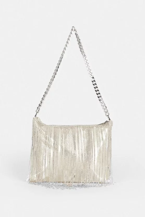 Main: 100% Polyester, Trim: 100% Aluminium, Lining: 100% Polyester. Bag: H:19cm x W: 27.5cm x D: 1.5cm. Strap length: 55cm.