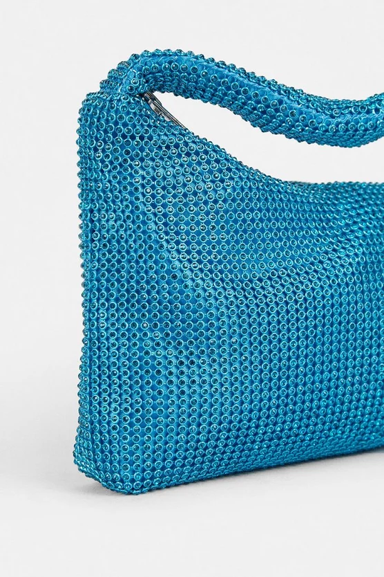 Crafted in a slouchy silhouette, this shoulder bag is adorned with sparkling diamante rhinestones and comes in various colour-pop iterations. The perfect size to hold the essentials, this bag makes a stylish and practical companion to nights out.