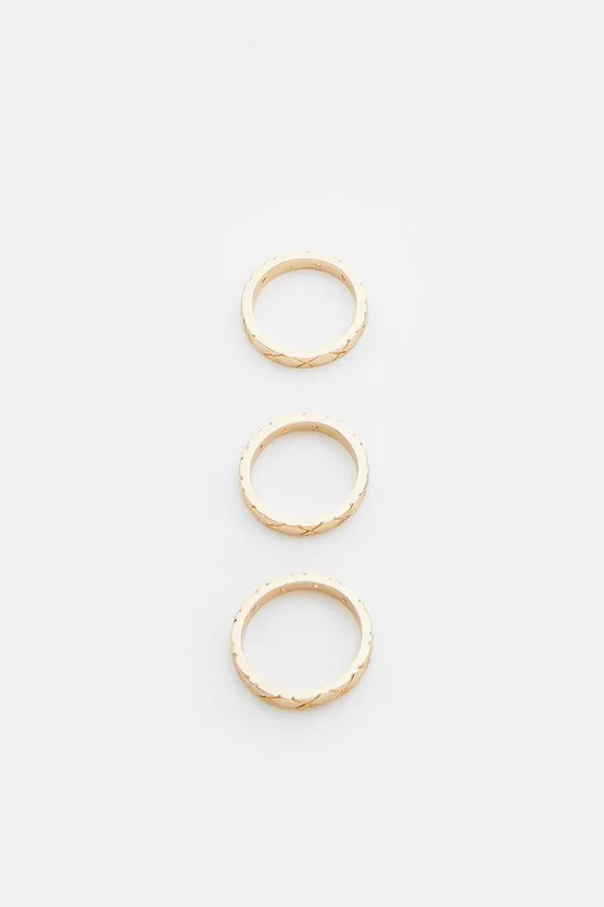 Adorn your fingers with this trio of rings. Designed in a premium gold-plated finish, you can wear separately for a minimal look or stack together for an on-trend touch.
