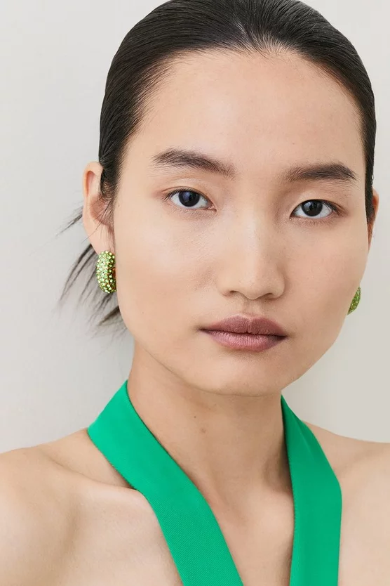 Add a dazzling twist to your hoops collection with this crystal-embellished style. Equally minimalist and dazzling, this pair is the ideal choice to elevate a silk blouse and midi skirt combo.