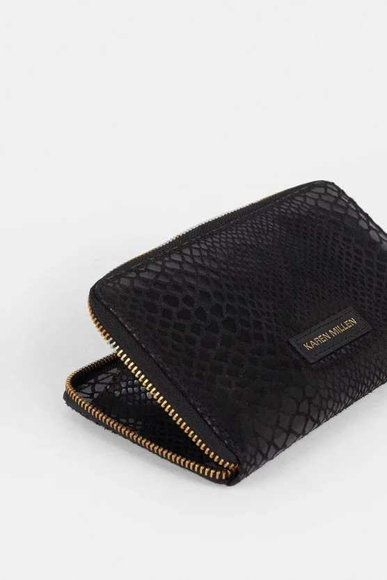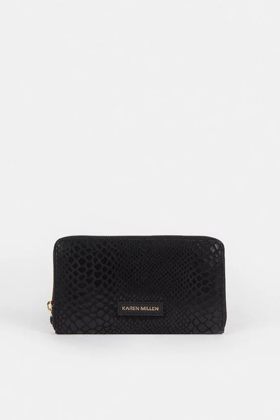 Main: Real leather, Lining: 100% Cotton. H: 11cm x W: 20cm x D: 2cm. Wrist Strap Length: 20cm