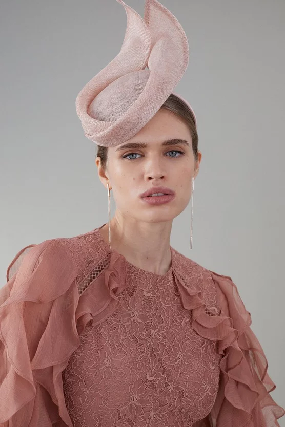 Nodding to the organic world with ethereal vision, this pillbox fascinator is a natural captivator. Sculpted to emulate the form of a leaf, itβs balanced on a slender headband to create a streamlined construction. Reserved for the most memorable of social affairs, pair this piece with dramatic platforms and blooming botanical graphics.