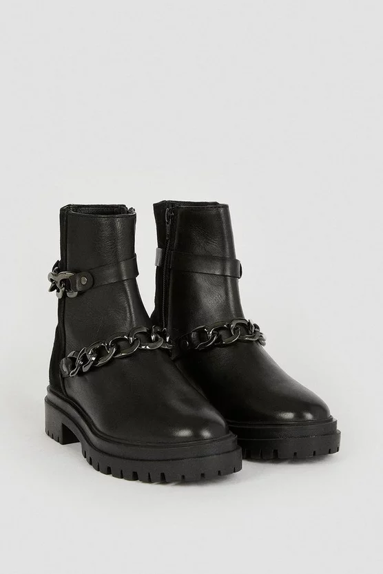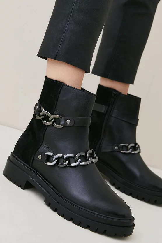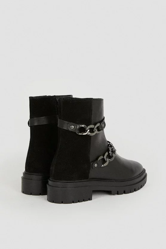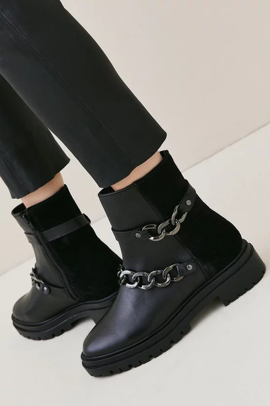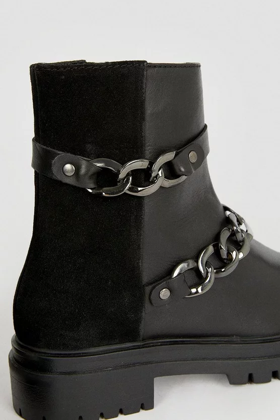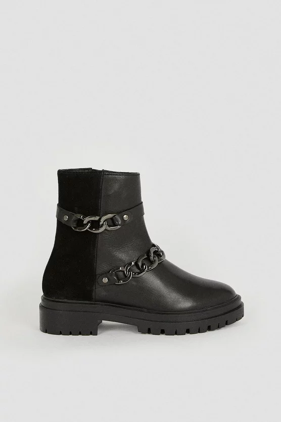 Upper: Leather, Lining: Leather, Insock: Leather, Sole: TPR, Trims: Metal Chain. Origin: India.