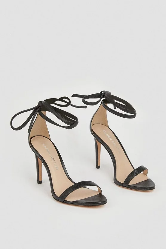 Accentuate shapely legs with these beautiful leather heels. Combining crossover ankle-tie straps with slim stilettos and an open-toed finish, they instantly dress up glamorous party ensembles or more understated looks. In a choice of versatile hues, theyβll punctuate party looks with ease for seasons to come.