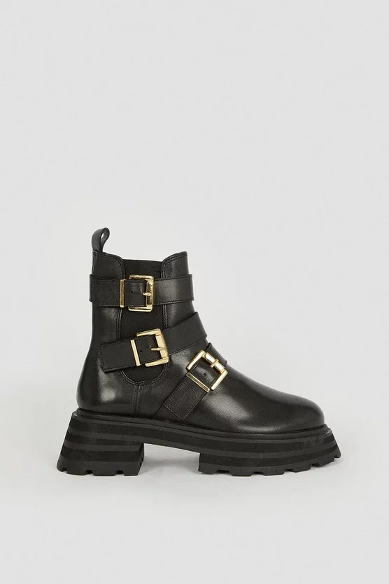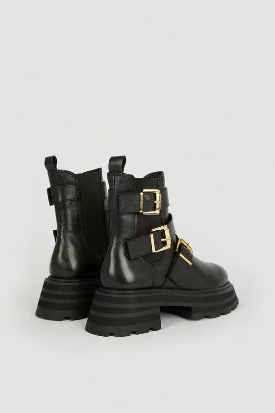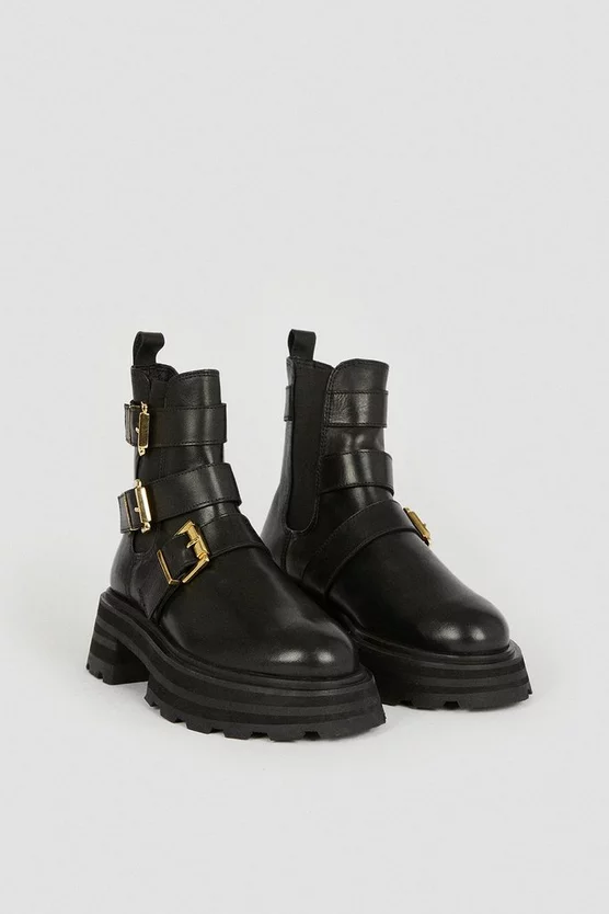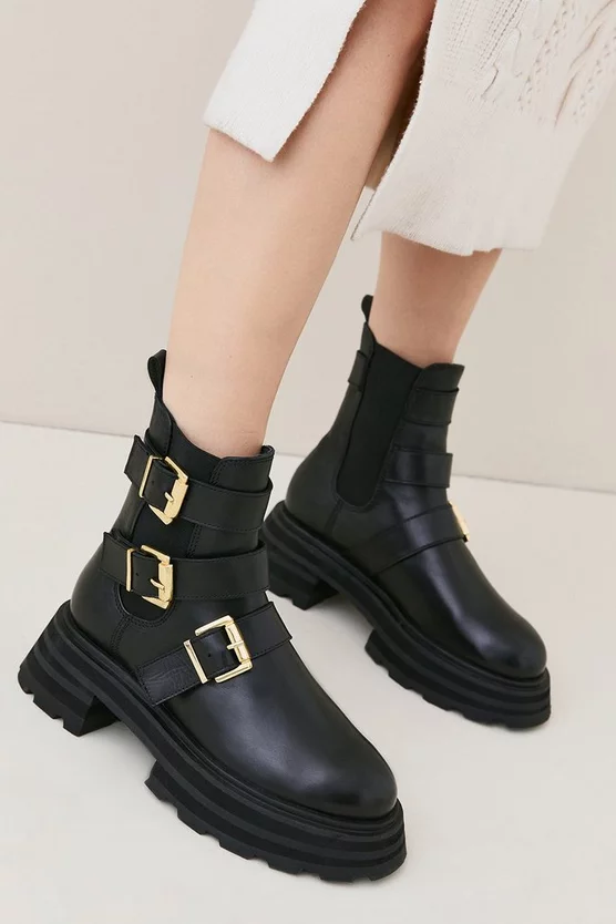 Upper: Leather, Lining: Leather, Insock: Leather, Sole: Tpr+Eva, Trims: Metal Buckle. Origin: India