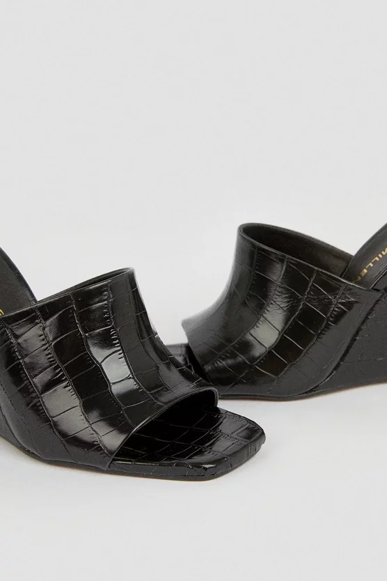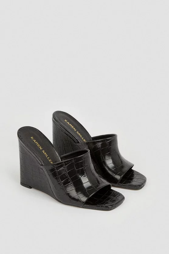 A fresh new take on the ever-popular 90s-style mule, these slip-on wedges come crafted from textured croc-effect leather and feature thick straps and directional squared-off toes. The perfect height for elongating legs, they instantly update love-worn denim jeans, flirty party dresses and work-appropriate tailoring too.