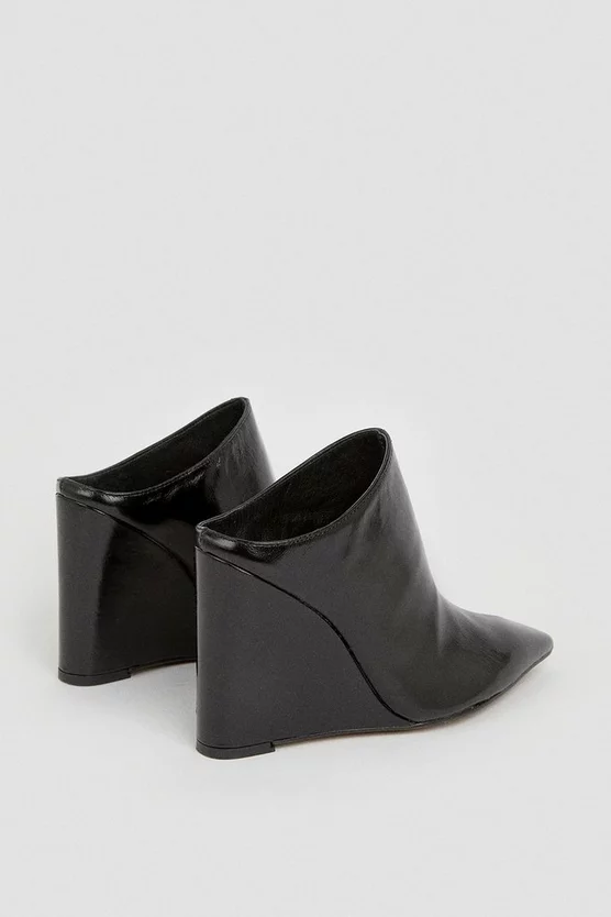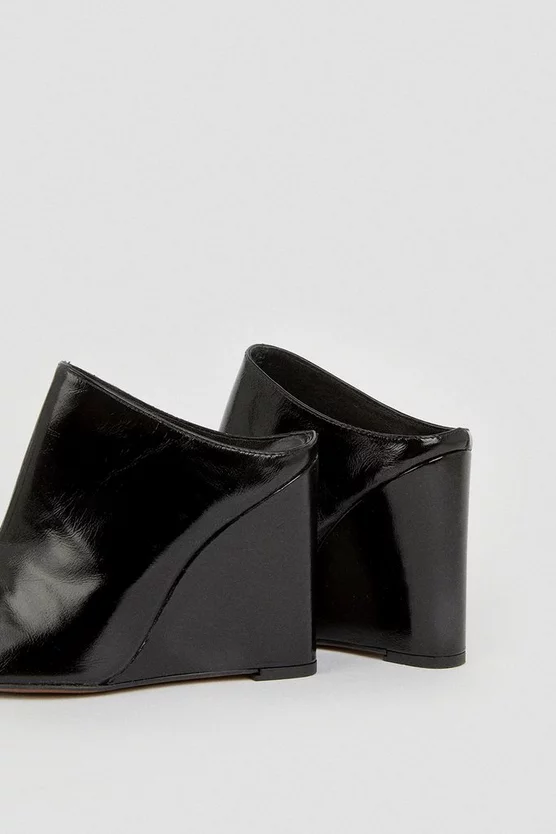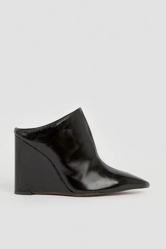 A modern update on the coveted mule, this striking patent pair features pointed toes, wedge heels and a directional slip-on fit. In a range of vibrant shades, they effortlessly modernise all-black ensembles and floaty summer dresses alike.