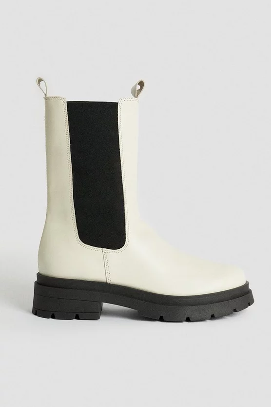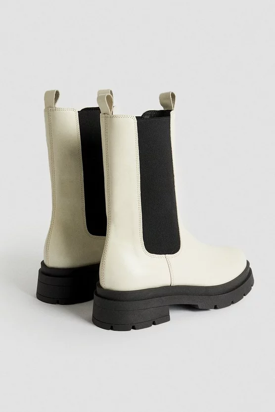 The boots on everybodyβs wishlist, this chunky pair come crafted from luxurious leather and show off elasticated side panels and practical tabs that make them easy to pull on and off. Raised leather soles and a chunky tread promise day-long comfort β pair them with a mini skirt and blazer to take full advantage of their leg-lengthening appeal.
