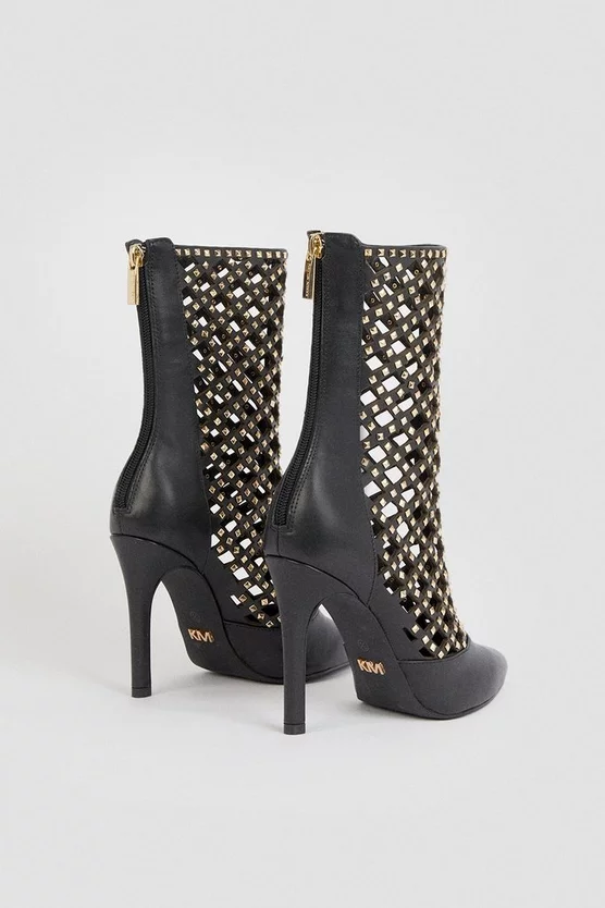 Upper: Leather, Upper lining: Leather, Lining: Leather, Sole: Rubber, Insole: Leather. Trims: Metal. Heel Height: 11cm