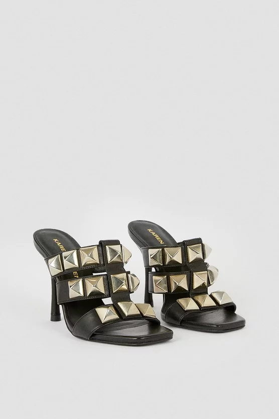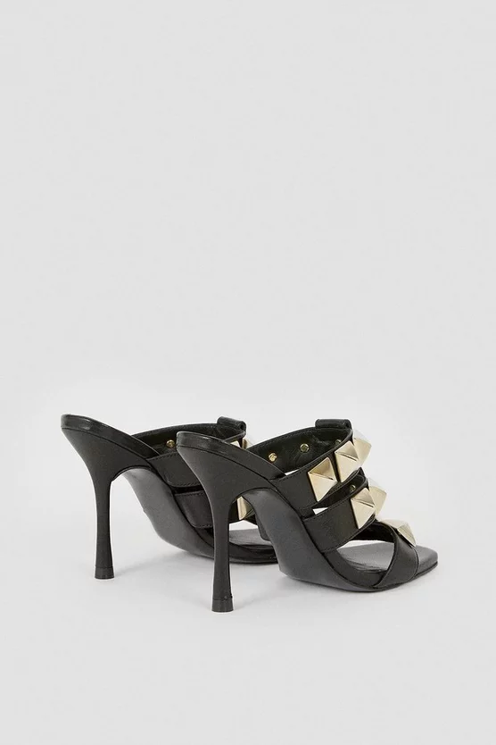 Amplify any day-to-night look with these chunky stud-detail mules. Crafted from sumptuously soft leather and featuring three straps, open toes and slender heels, they elevate neutral separates in seconds. The statement studs gleam glamorously with every step you take.