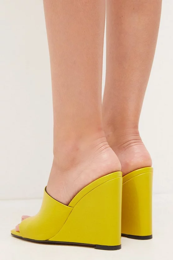 A fresh new take on the ever-popular 90s-style mule, these slip-on wedges come crafted from rich, colour-pop leather and feature thick straps and directional squared-off toes. The perfect height for elongating legs, they instantly update love-worn denim jeans, flirty party dresses and work-appropriate tailoring too.