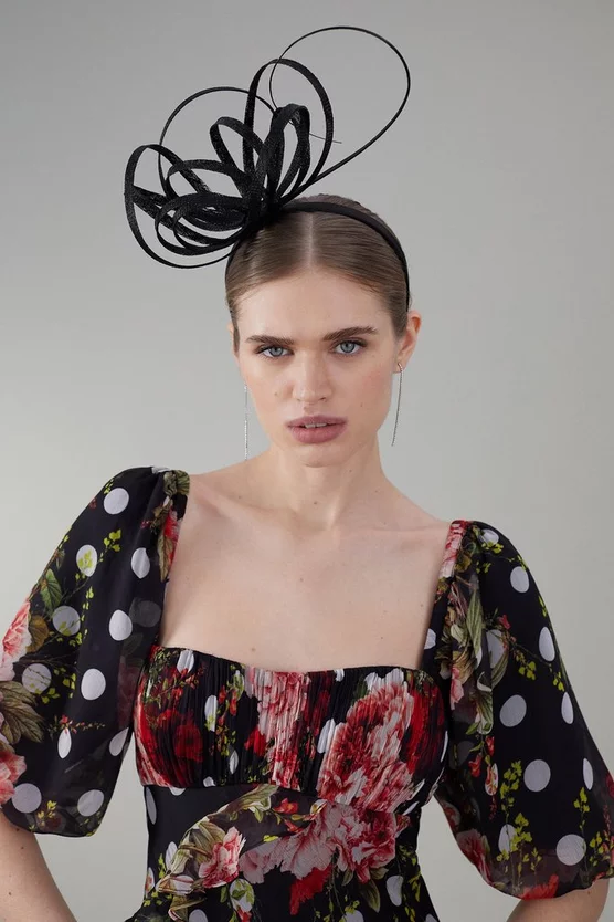 Stay firmly in the style loop with this architectural headpiece in your accessory arsenal. A high-fashion feat of artful engineering, it shows off curvaceous loops that twine elegantly over the crown and slips on simply thanks to its satiny headband. Perfect for that sophisticated Ladies Day ensemble or a summer wedding, it will make a head-turning mark wherever you go.