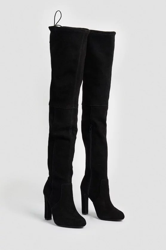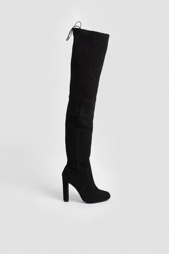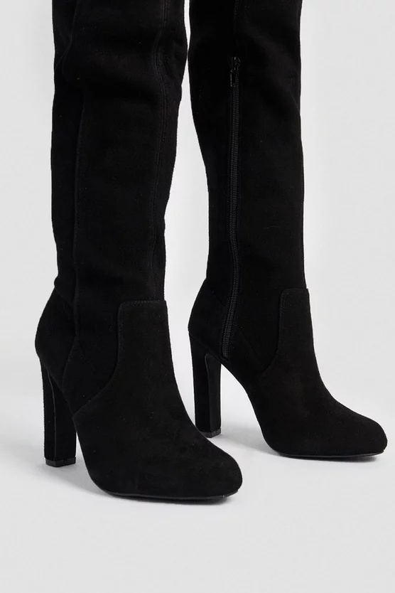 Master the art of β60s-inspired styling. These investment-worthy suede boots sit high up on the thigh for a seductive finish and show off rounded toes and tie-detail tabs. Exuding endless leg-lengthening appeal, they pair perfectly with the seasonβs bohemian printed mini dresses, zipping neatly for a comfortable finish.