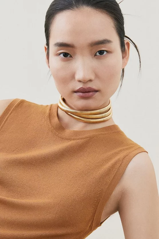 Designed in a minimalist style, this necklace beautifully wraps around the neck, making it the perfect option to add a modern twist to any look. Uplift your classic white shirt and be ready to turn heads.