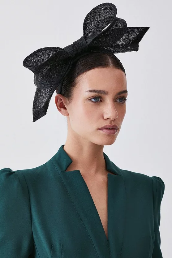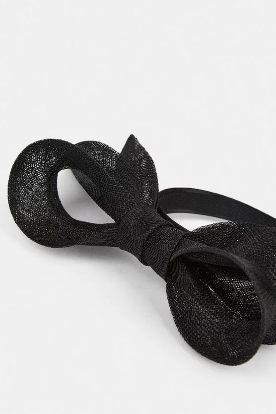 Structured with zesty imagination, this fascinator captures the art of sculpture to create a statement-making headpiece. Infused with architectural inspiration, this design folds into itself to create a captivating bow design β balanced on a slim headband. Dreamt-up for truly special affairs, pair with blooming botanicals and tonal accessories.