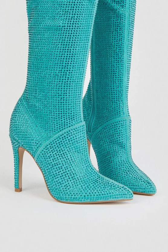 Embrace enlivened aesthetics with the fantasy vision of these embellished boots. Imbued with amped-up disco drama, they cut a streamlined silhouette that balances the luxurious addition of all-over crystals with masterful aplomb.